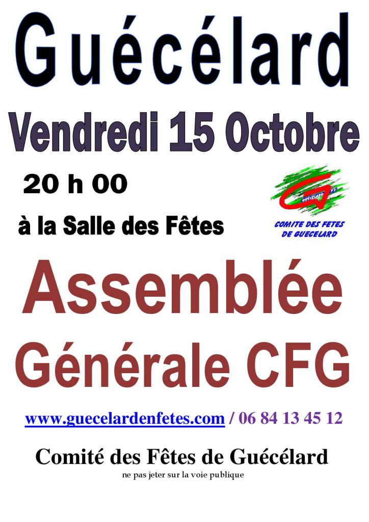 Nous vous convions à l’assemblée générale du Comité des Fêtes qui aura lieu le vendredi 15 octobre à 20h à la salle des fêtes.