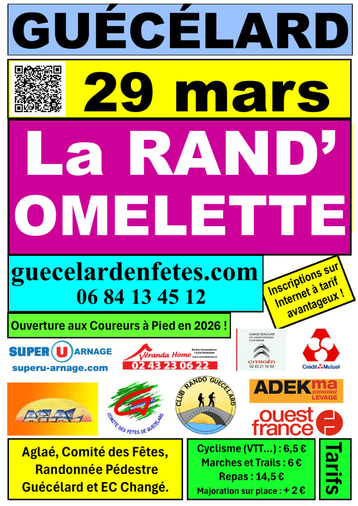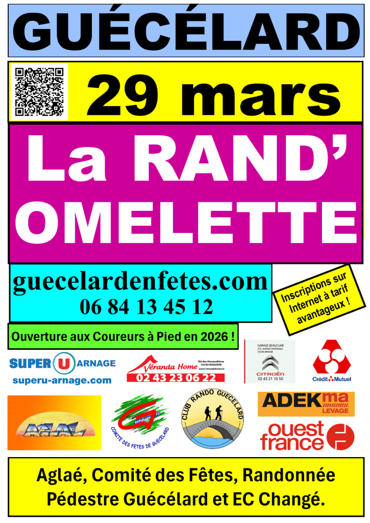 Au regard des élections municipales prévues en 2026 (et de l’indisponibilité des salles les 15 et 22 mars), la Rand’Omelette s’adapte et se déroulera le 29 mars.