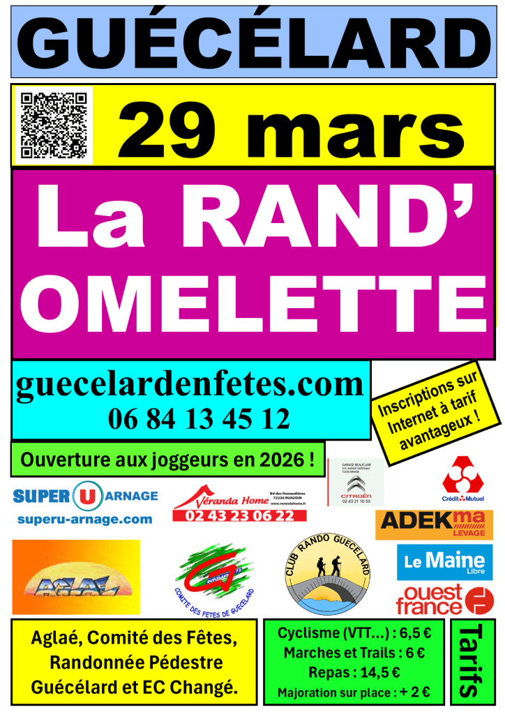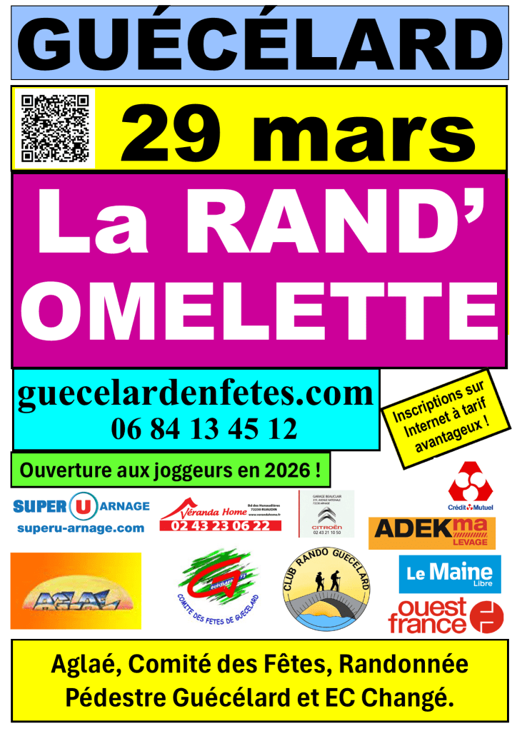 Au regard des élections municipales prévues en 2026 (et de l’indisponibilité des salles les 15 et 22 mars), la Rand’Omelette s’adapte et se déroulera le 29 mars.
