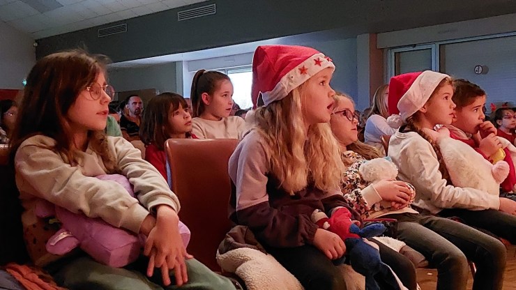 Après son arrivée avec ses lutins et des échassiers, la traditionnelle photo et la distribution de peluches du Secours Populaire, tout ce petit monde (plus de 260 personnes) a assisté au spectacle gratuit des clowns Recto et Verso. Les décors pour la photo dans la petite salle des fêtes ont été mis en place par l’association Créaloisirs.