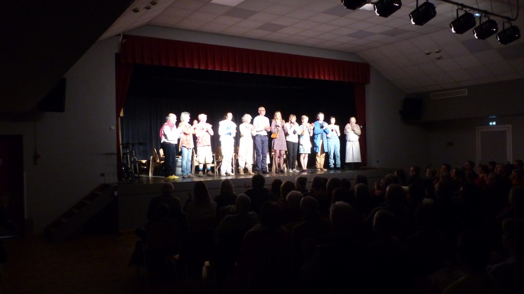 Elle a interprété avec brio sa toute dernière pièce qu’elle a entièrement créée et produite. 141 personnes ont applaudi les douze comédiens, venus jouer une comédie sur différents thèmes de la société, tel que l’amour, l’écologie, la colocation et … les saucisses !