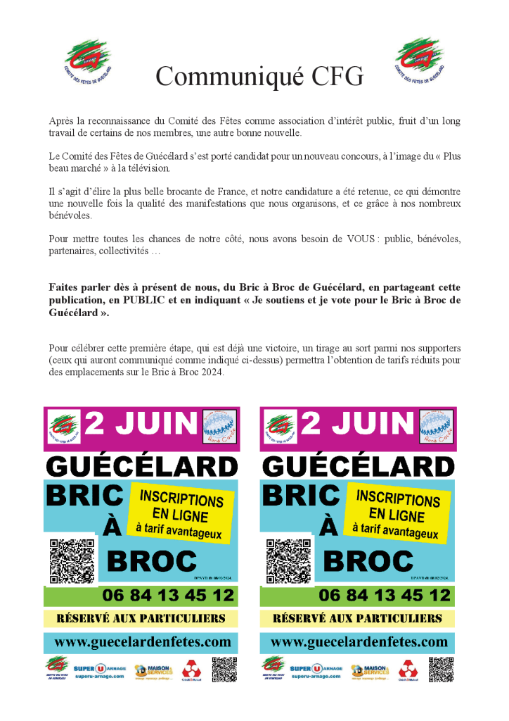 Le site d’inscriptions pour les activités, les réservations de repas… et les dons est ouvert et accessible depuis le site du Comité des Fêtes de Guécélard.