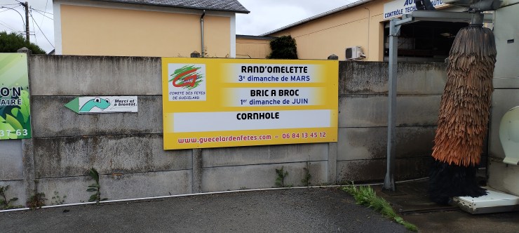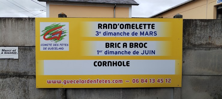 Le temps faisant son œuvre et nos types de manifestations évoluant, une équipe de bénévoles s’est affairée ce samedi matin pour faire évoluer le portique côté La Flèche (qui supporte notre logo et l’intitulé de notre site internet), et le panneau installé à la station de lavage qui reprend les manifestations répétitives de notre Comité des Fêtes, Rand’Omelette, Bric à Broc et désormais Cornhole (qui a remplacé le Festicap et son Marathon).