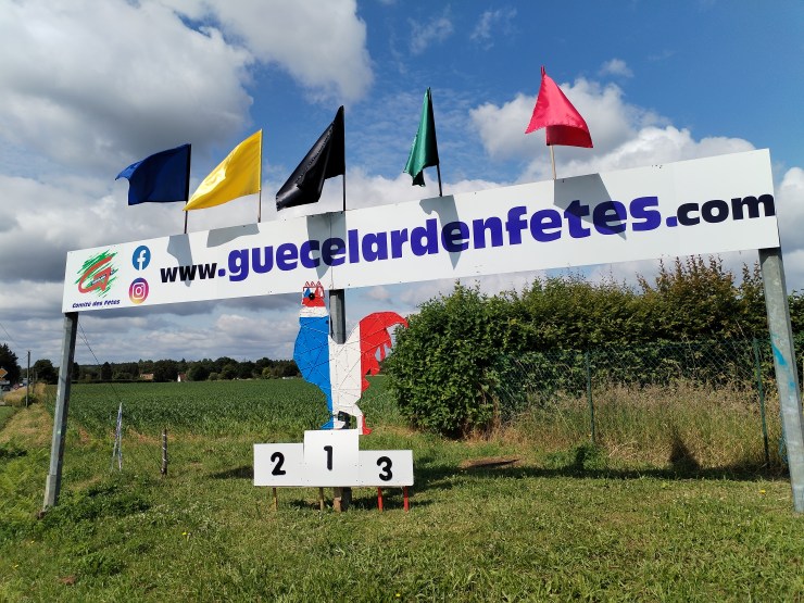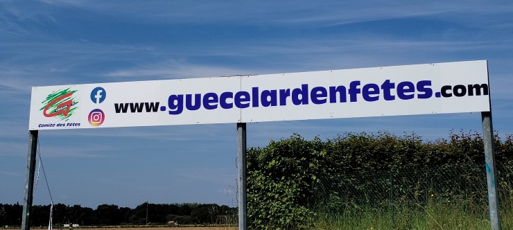 Comme en 2022, le Comité des Fêtes n’aura pas accès à la place du Gué pour ses décorations. Nos visuels ont été disposés au plus près des habitants sur une vingtaine de zones réparties sur l’agglomération ainsi qu’en campagne et en sortie de Guécélard côté la Flèche. Nous avons donc élargi le processus 2022 qui ne comptait que 6 zones.