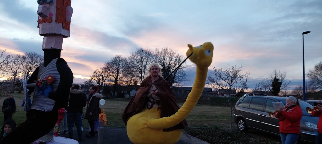 Depuis maintenant plusieurs années, l’association des « Lucioles » organise un carnaval dans les rues de Guécélard. Plusieurs dizaines de personnes, petits et grands, se sont réunies pour déambuler, en compagnie des échassiers du Comité des fêtes afin d’aller chercher « Monsieur Carnaval » à l’école maternelle de la commune.
