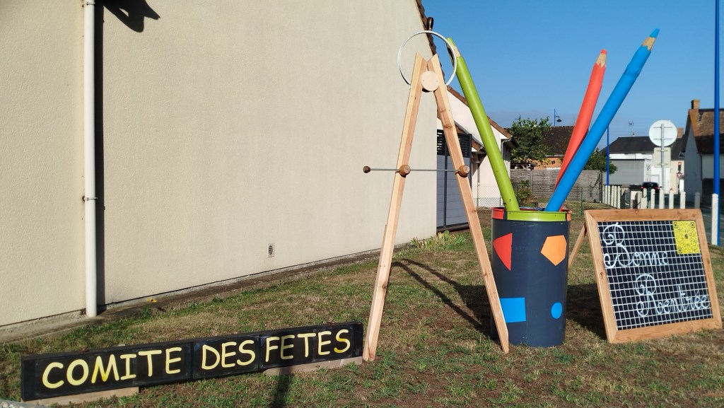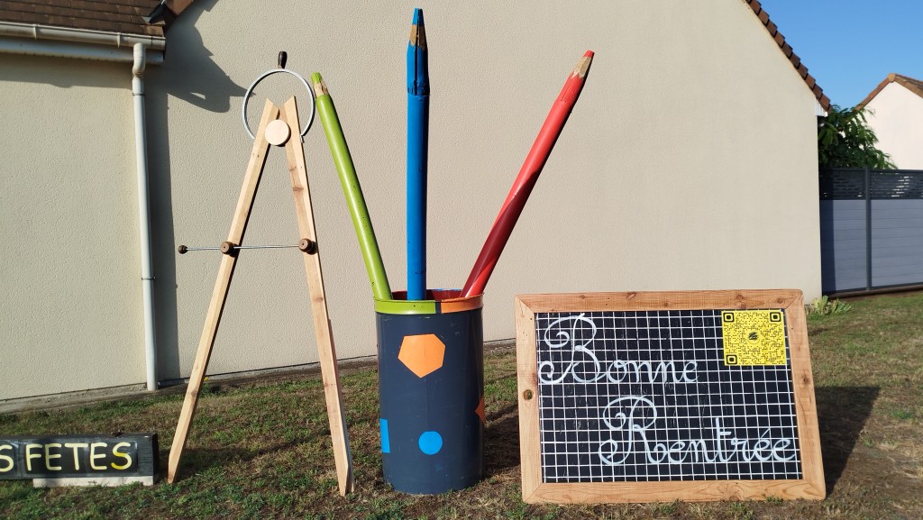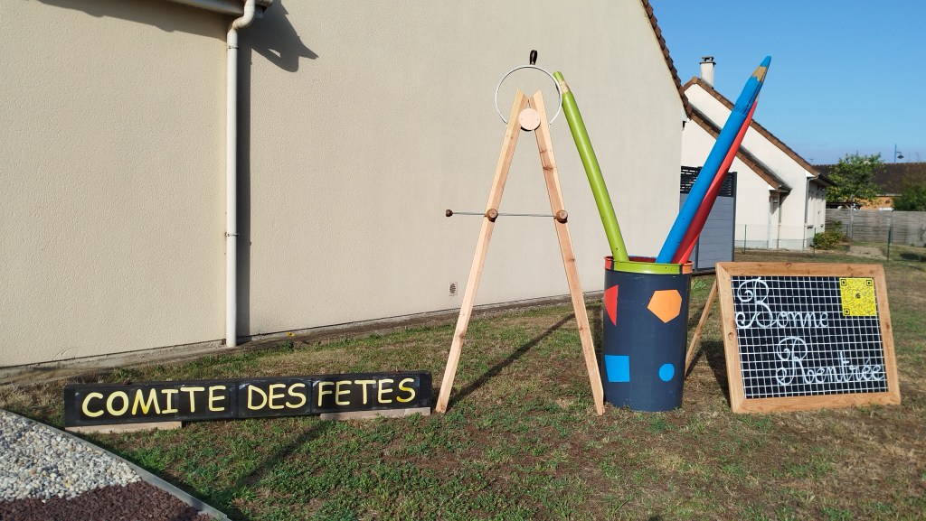 Un visuel original trône sur un terrain privé au carrefour du Chemin du Dauphin / Chemin Bas / route de Oizé. Cette création du Comité des Fêtes de Guécélard générée dans le cadre des chantiers bénévoles (organisés le jeudi et parfois le mardi) nous rappelle que la rentrée est proche.
