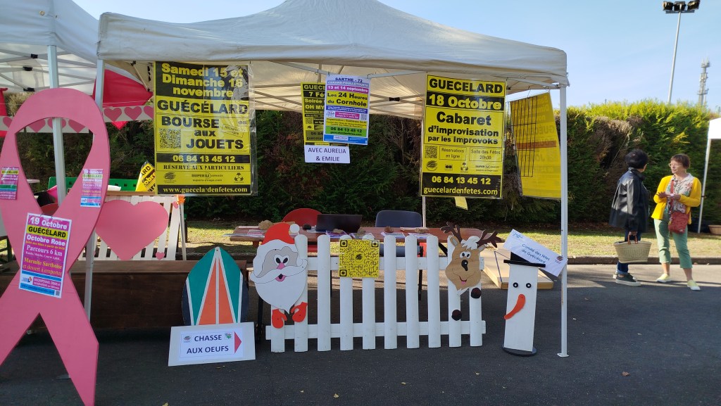 Un nouveau visuel très coloré et particulièrement original installé sur l’espace vert de la Place du Gué, annonce la Bourse Aux Jouets de Guécélard. Une conception de l’équipe du « Jeudi » composée de quelques membres dévoués et doués en bricolage mais aussi en innovation, en récupération… au service du Comité des Fêtes de Guécélard.