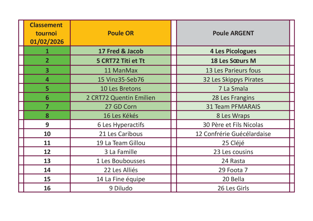 Une nouvelle fois, l’état d’esprit des joueurs et le respect mutuel des équipes a permis un déroulement des compétitions sans aucun problème avec un timing respecté. Les 25 bénévoles ont encadré avec soin et application ce concours où chacune des équipes a pu recevoir un lot grâce à la générosité de partenaires et en particulier le Crédit Mutuel (agence d’Arnage) et la SCEA Seuru (Champagné).