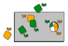 Le cornhole est un jeu dans lequel les joueurs lancent tour à tour des sacs remplis de grains de maïs ou de granulés plastiques sur la plateforme inclinée adverse percée d’un trou. Cornhole est la contraction des mots maïs et trou.