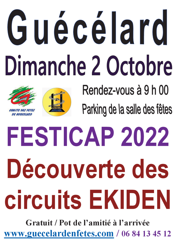 La mise en place d’Ekidens (Ekiden et Ekiden Kids +) sera l’évènement marquant du Festicap 2022. Ces deux courses se dérouleront le samedi après midi.